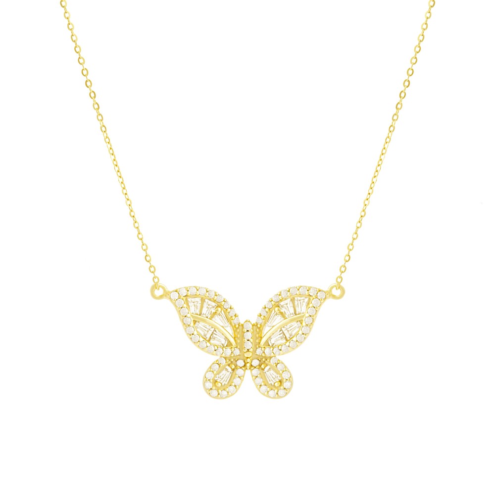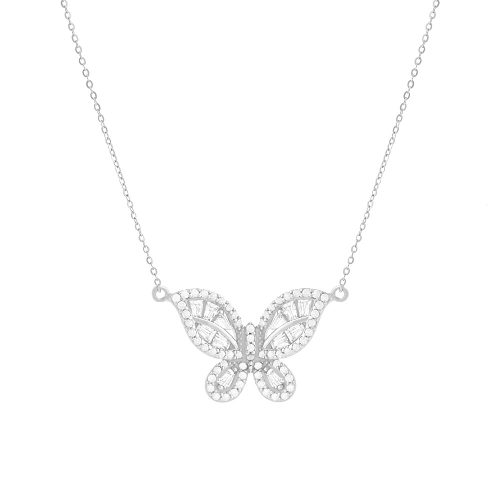 سلسال من الفضة عيار 925 على شكل فراشة مرصع بحجر الزركون البراق مع إمكانية التحكم بالمقاس