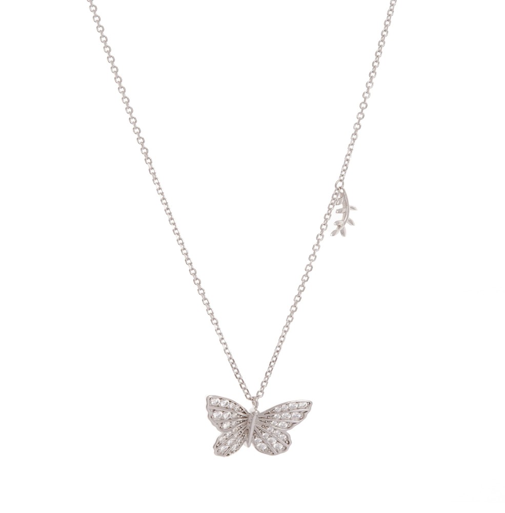 سلسال فضة عيار 925 على شكل فراشة مزين بالزركون مع إمكانية التحكم بالطول