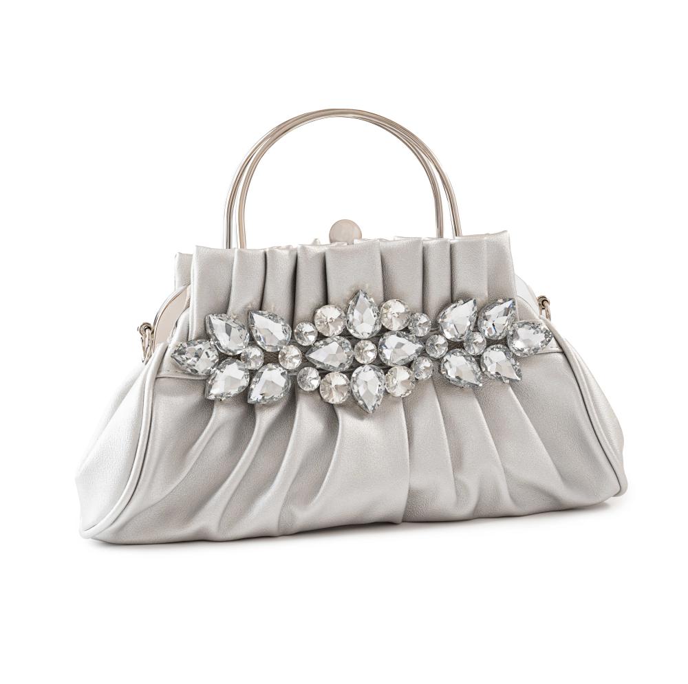 - حقيبة سهره تضيف لمسة فاخرة على إطلالتك بفضل تصميمها اللامع المرصع بحبات الزركون البراق.