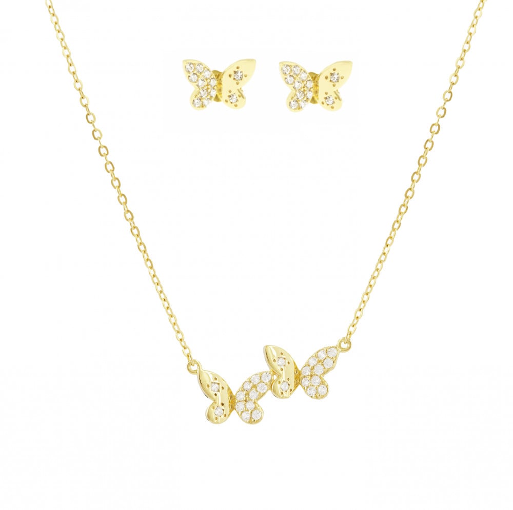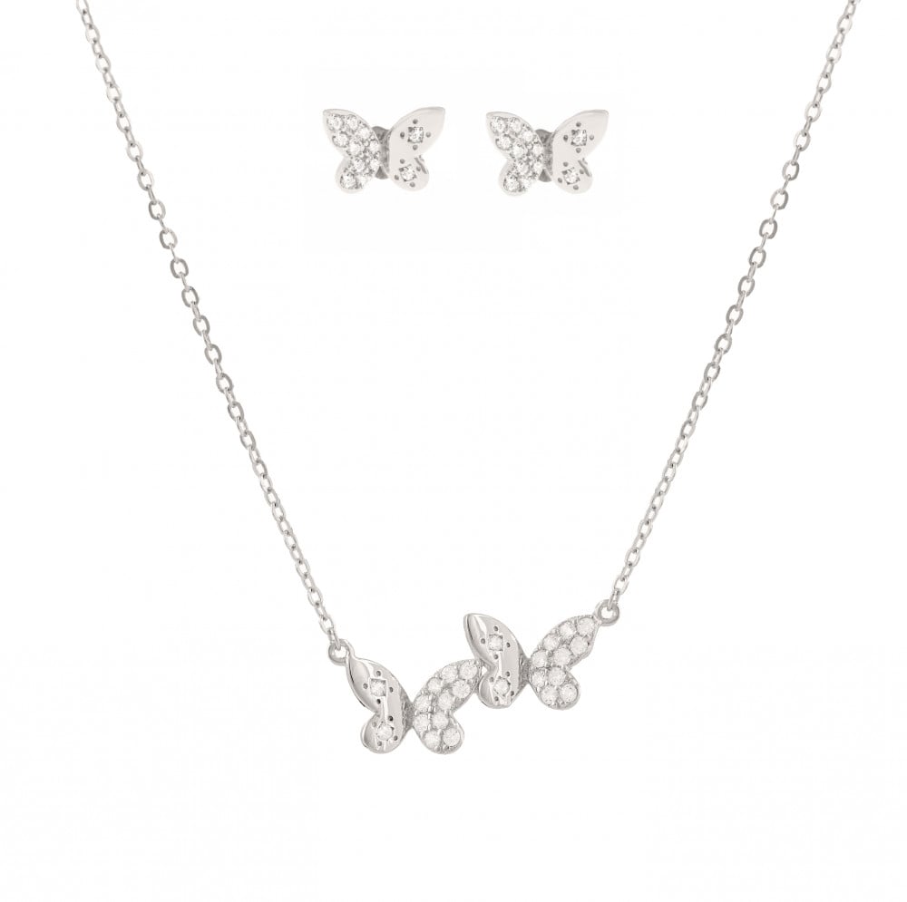 - طقم فضة ناعم يتناسب مع مختلف الأذواق بفضل تصميم الفراشة الأنيق.