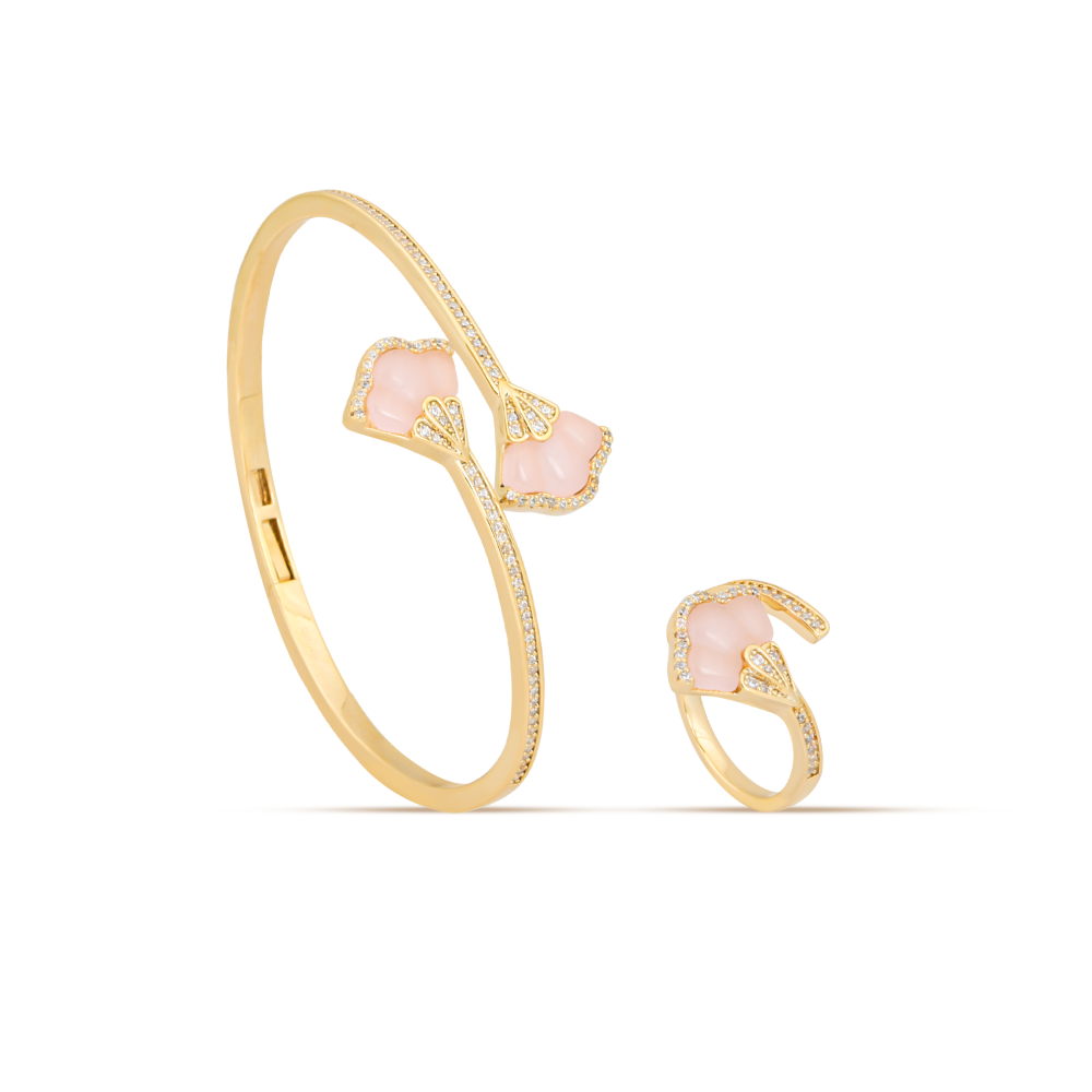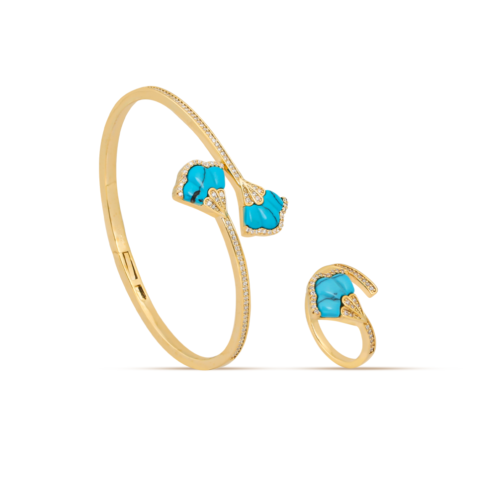 - السوار والخاتم مطلي بالذهب أو الروديوم لزيادة الفخامة وضمان بريق طويل الأمد.