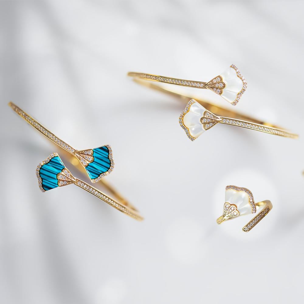 - سوار وخاتم مصممين تصميم فني يعكس الجمال الطبيعي للزهور ويضفي لمسة من الأناقة على المعصم.